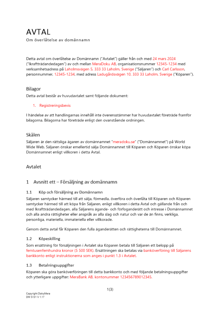 • Avtal aktieöverlåtelse