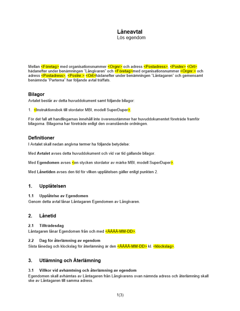 Produkter taggade med 'lös egendom låneavtal avtal lån av lös egendom utlåning lösöre'