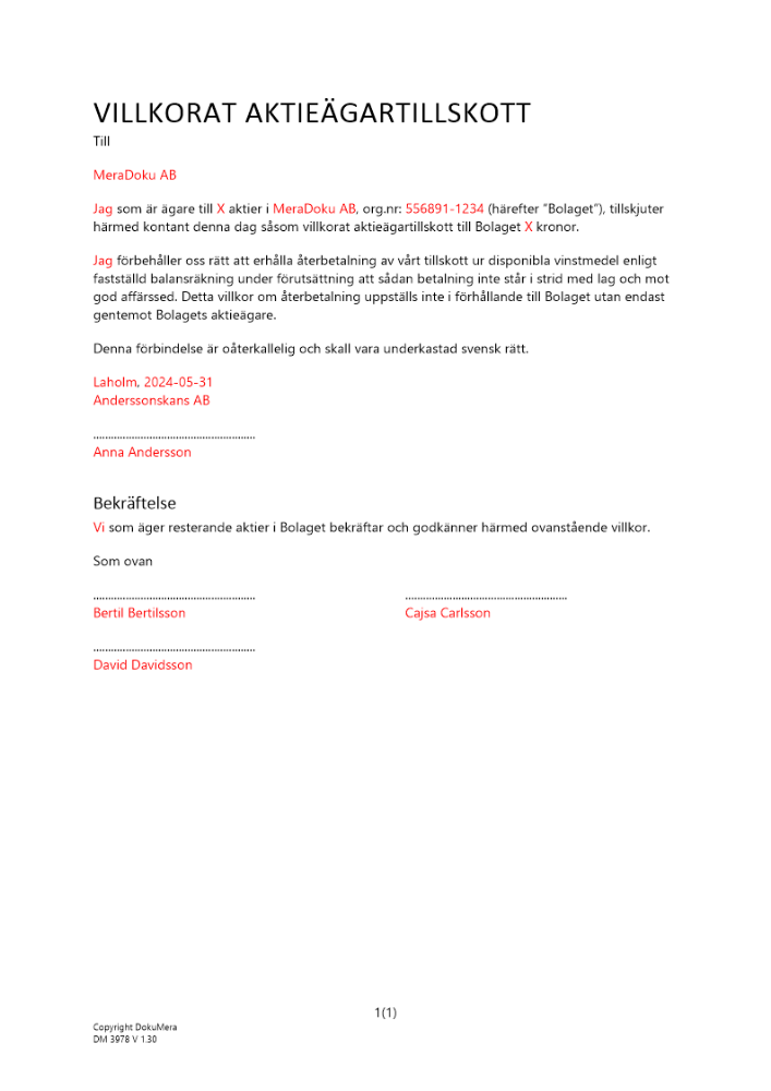 Produkter taggade med 'Aktieägartillskott Kontant Villkorat egna kapital nyemission obestånd'