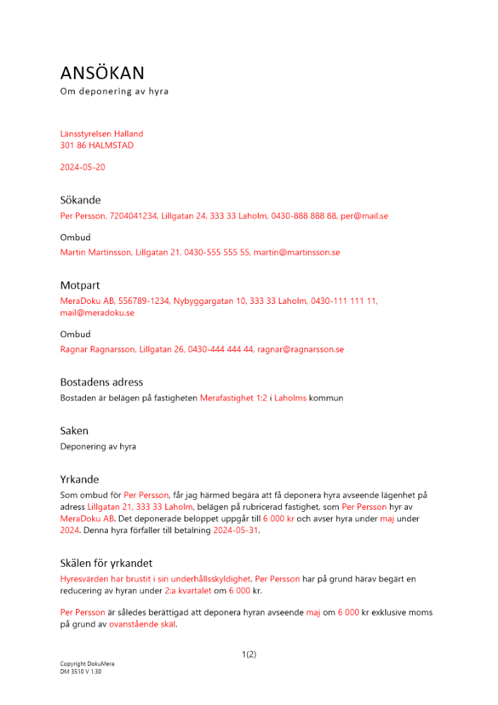 Produkter taggade med 'bostad ansökan deponering deposition länsstyrelsen lägenhet hyresgäst hyresvärd tvist'