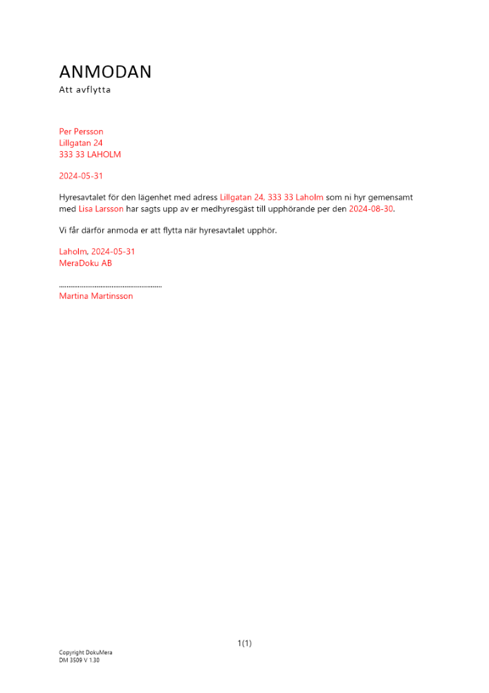 Produkter taggade med 'anmodan hyresgäst lägenhet medhyresgäst flytta ut avflytt hyresrätt'