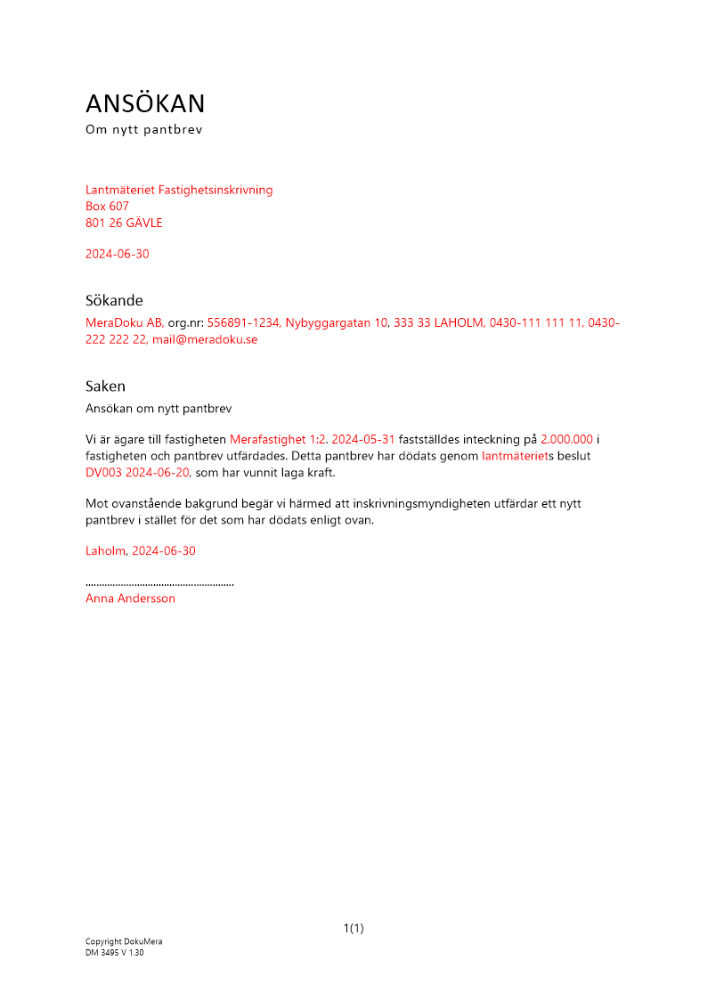 Produkter taggade med 'ansökan företag nytt pantbrev ersätta pant inskrivningsmyndigheten'