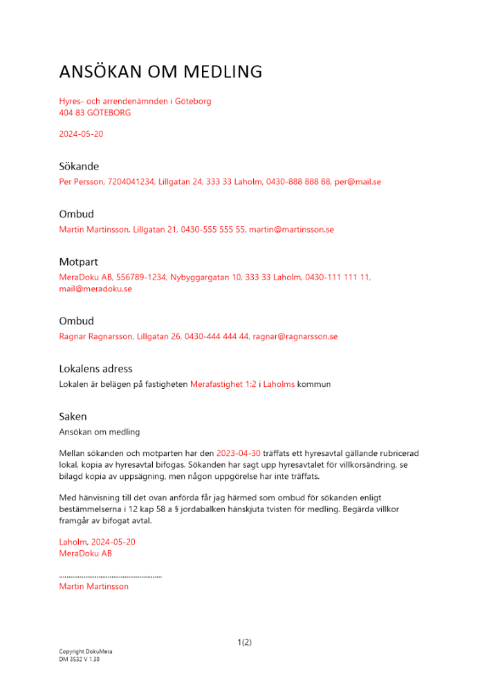 Produkter taggade med 'Ansökan medling hyresnämnden hyresgäst lokal'