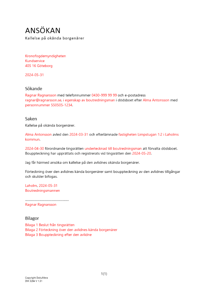 Produkter taggade med 'Kallelse okända borgenärer borgenärer dödsbo kronofogden fordringar'
