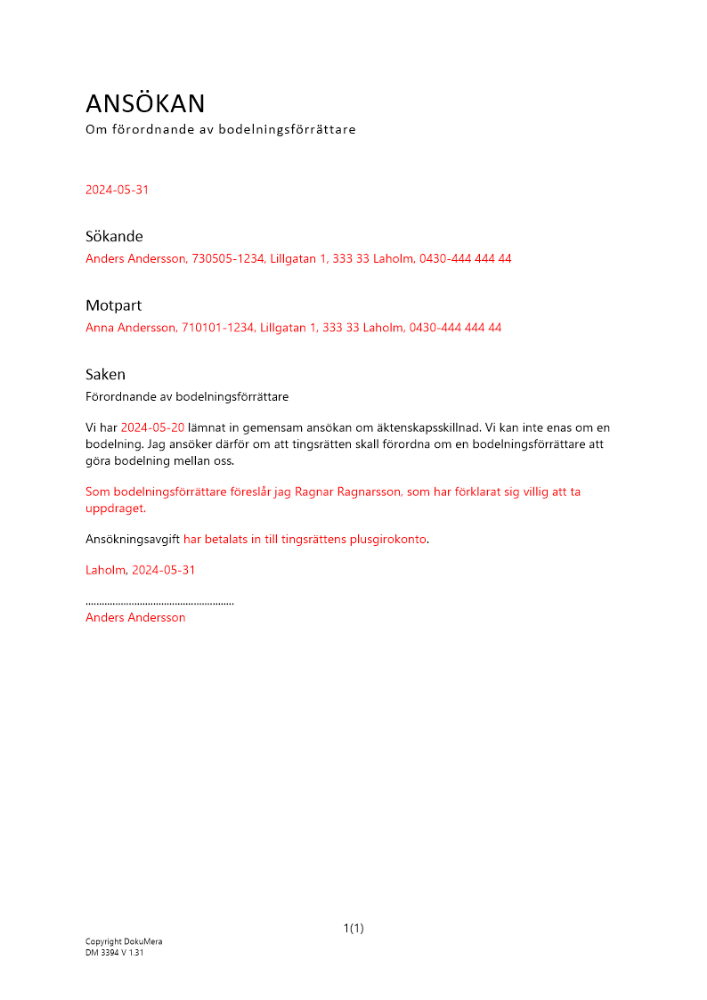Produkter taggade med 'ansökan bodelningsförrättare bodelning skilsmässa upplöst äktenskap'