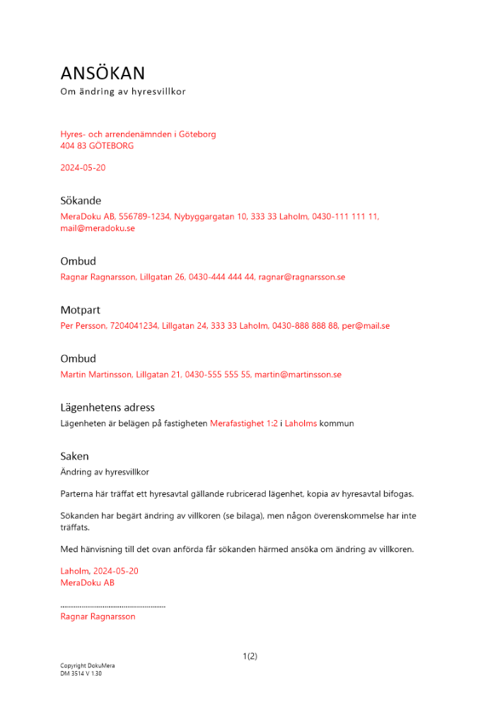 Produkter taggade med 'ansökan hyresnämnd ändring villkor hyra hyresvärd hyresgäst lägenhet'