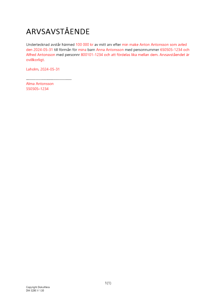 Produkter taggade med 'Arvsavstående arv kvotdel villkorslöst barn skattemyndigheten bouppteckningen'