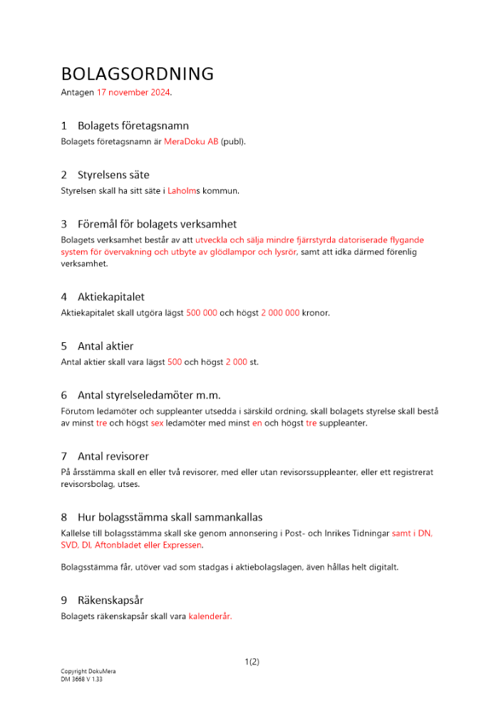 Produkter taggade med 'Bolagsordning avstämningsbolag publikt akieägare VPC registrering bolagsverket bolagsmän bolagsstämma Bolagsordning avstämningsbolag publikt akieägare VPC registrering bolagsverket bolagsmän bolagsstämm'