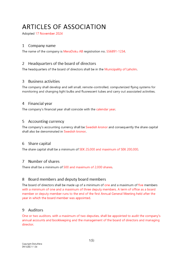 • Bolagsordning