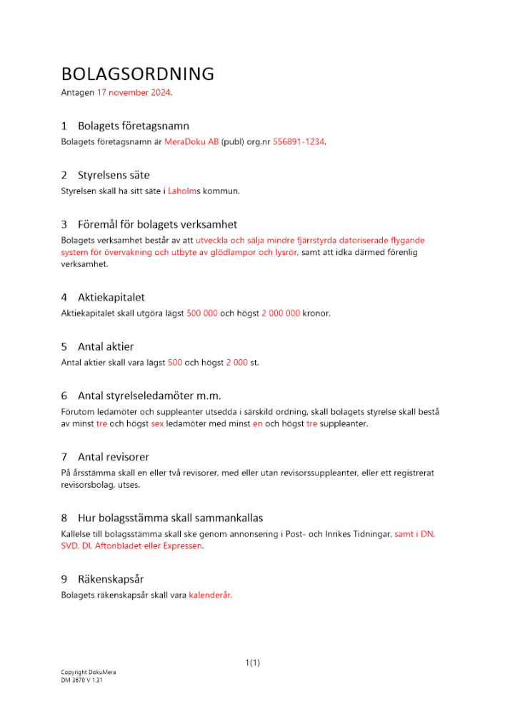 Produkter taggade med 'Bolagsordning restriktioner publikt bolag avstämningsbolag börsnoterat aktiebolag aktieägare'