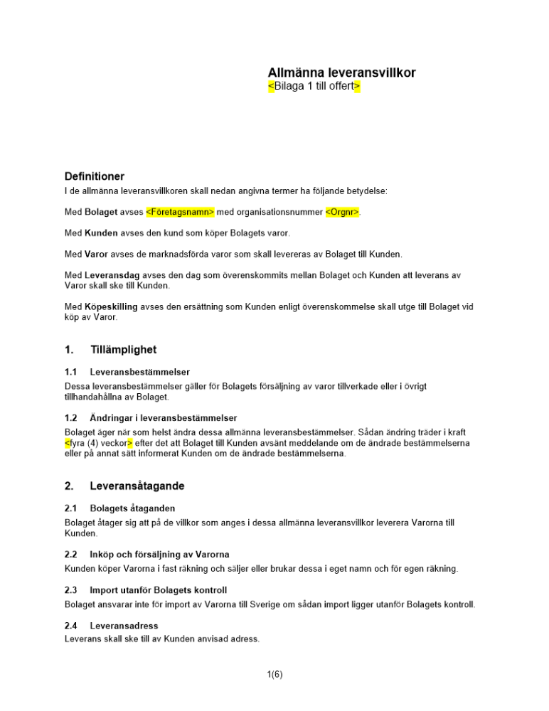 Produkter taggade med 'försäljningsavtal köpvillkor leveransvillkor leverans offertförfrågan allmäna villkor allmänna villkor leverans villkor kundavtal kund avtal Allmänna leveransvillkor leveransbestämmelser offert avtal försäljning av varor transport'