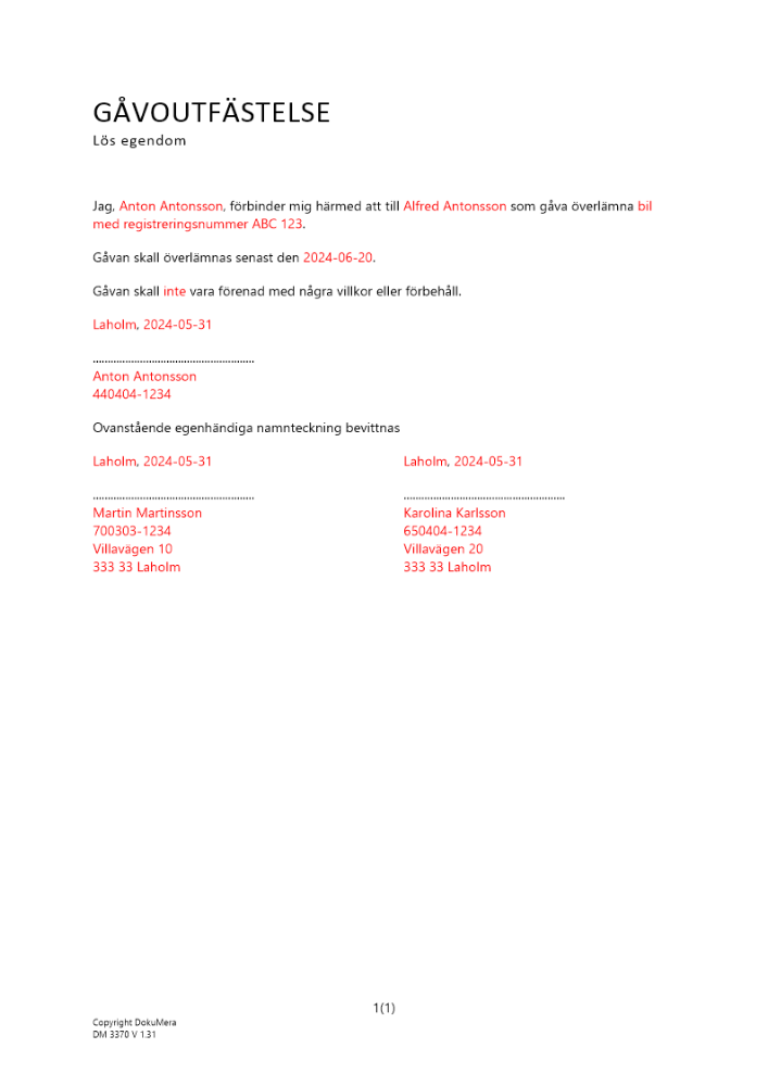 Produkter taggade med 'gåvoutfästelse gåva lös egendom utfästelse gåvogivare lösöre löfte'