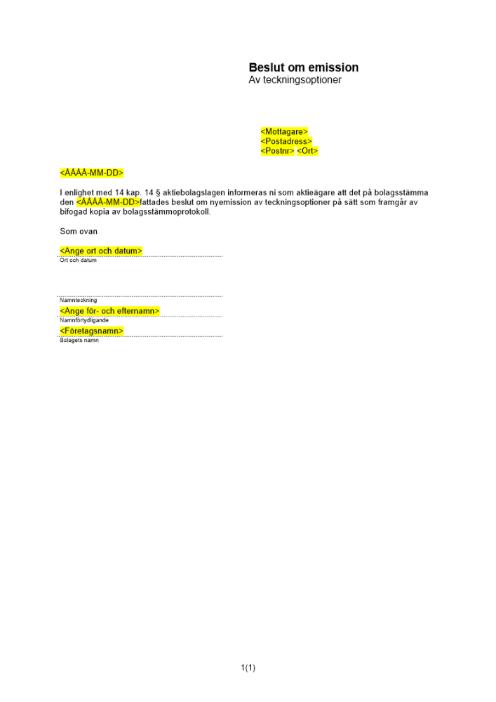 Produkter taggade med 'emmissionsunderrättelse nyemission teckningsoptioner aktieägare emmissionsbeslut Brev till aktieägare emmissionsunderrättelse nyemission teckningsoptioner aktieägare emmissionsbeslu'