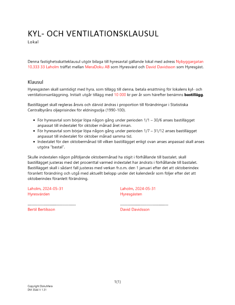 Produkter taggade med 'Kyl ventilation klausul lokal lokalhyra hyresgäst avtal'