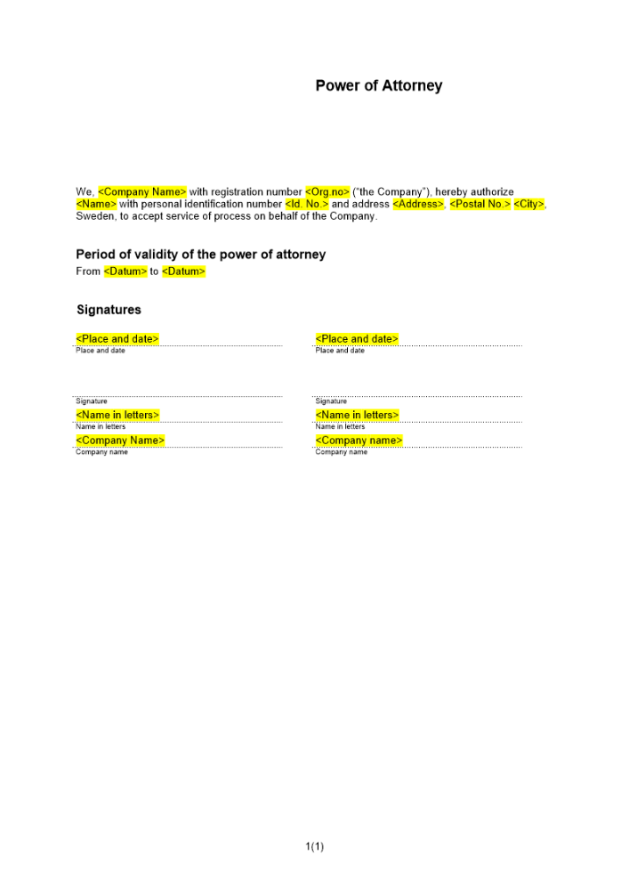 Produkter taggade med 'Delgivningsmottagare fullmakt engelska attorney delgivning'