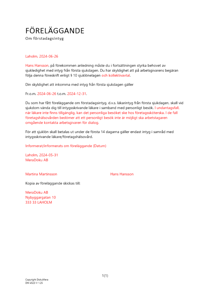 Produkter taggade med 'sjukfrånvaro frånvaro hälsa personal sjukintyg intyg förstadagsintyg sjuklönelagen sjuklön'