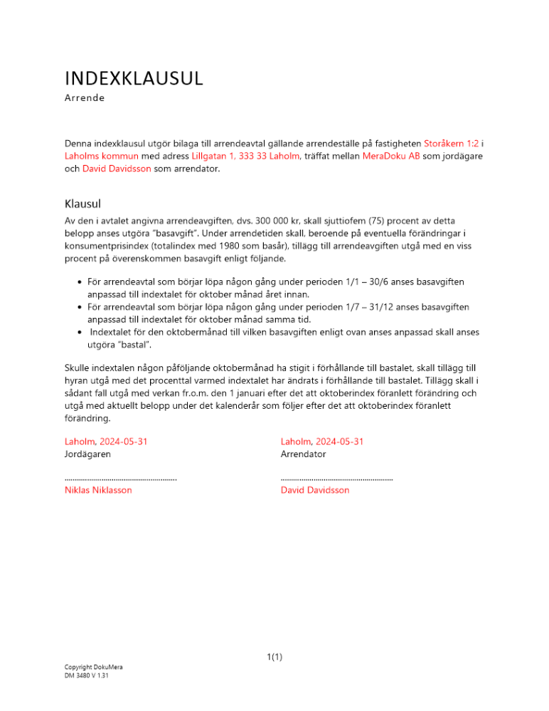Produkter taggade med 'Indexklausul konsumentprisindex KPI arrende arrendeavtal avtalsklausul upplåtande av mark jordbruksavtal Indexklausul konsumentprisindex KPI arrende arrendeavtal avtalsklausul upplåtande av mark jordbruksa'
