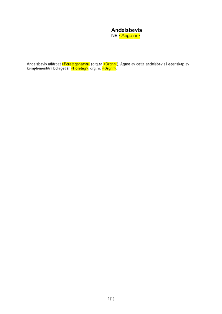 Produkter taggade med 'Andelsbevis kommanditbolag andel bolagsman komplementär'
