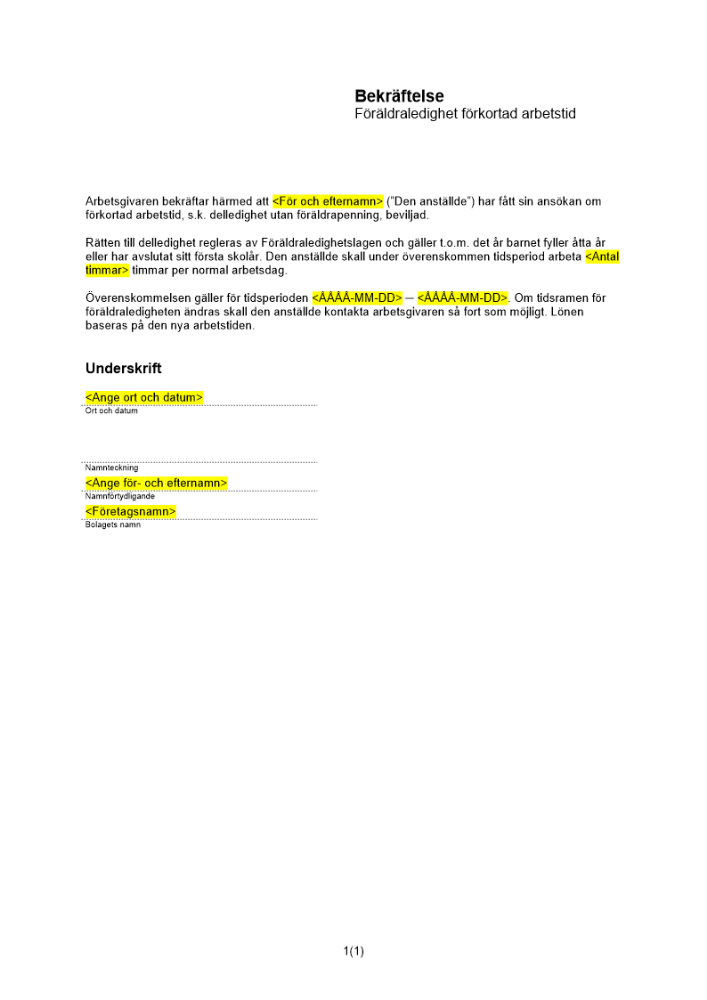 Produkter taggade med 'bekräftelse föräldraledighet delledighet förkortad arbetstid barn'