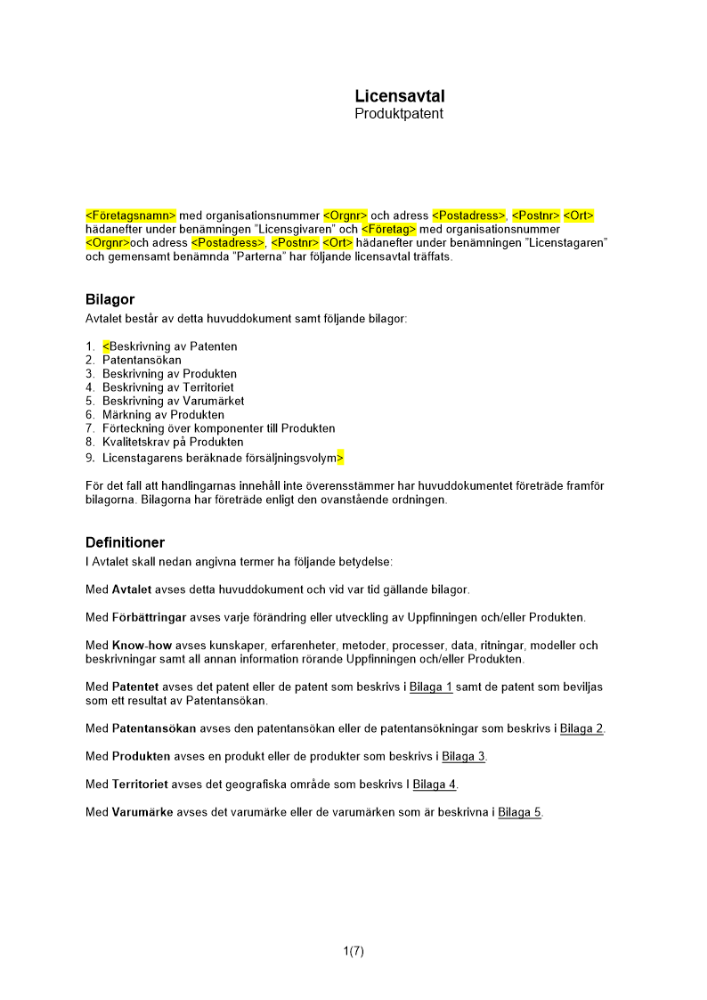 Produkter taggade med 'Licensavtal patent produktpatent varumärke avtal licens produkt'