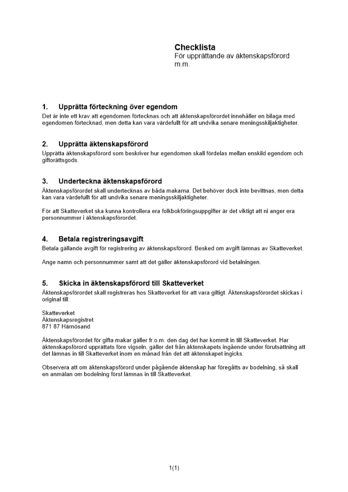 Produkter taggade med 'bröllop Checklista upprättande äktenskapsförord äktenskapsbalken äktenskapsregistret tingsrätten skriftligt'