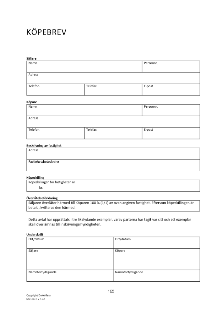 Produkter taggade med 'Köpebrev Villa fritidshus fastighetsköp kvitto köpekontraktet lagfartsansökan inskrivningsmyndighet'