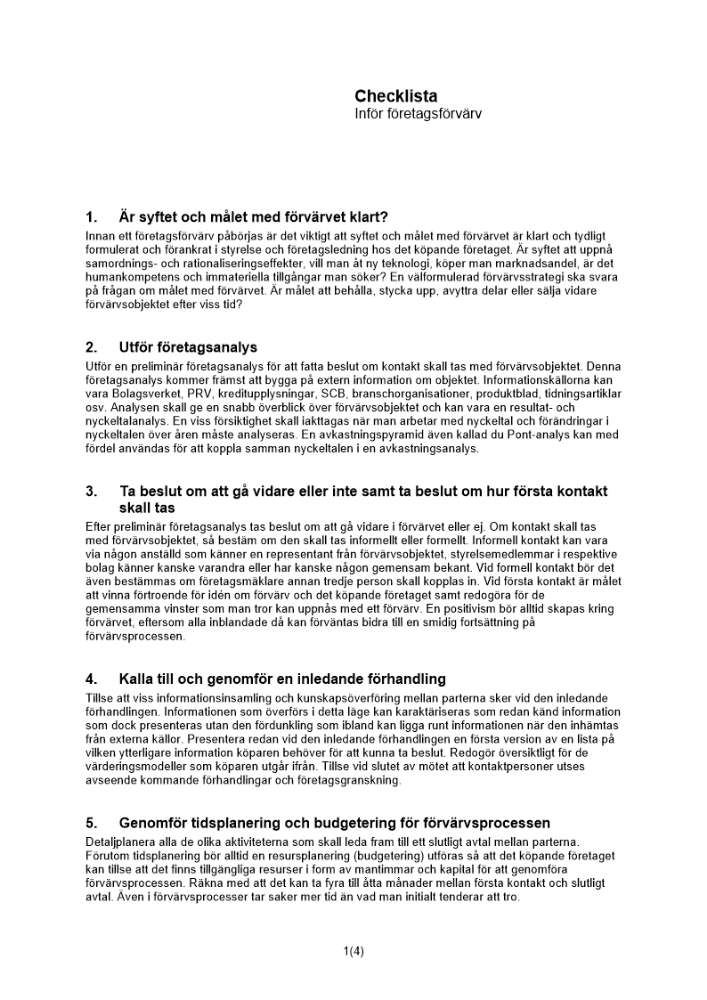 Produkter taggade med 'Checklista företagsförvärv inkråmsaffär företagsöverlåtelse skattekonsekvenser aktier företagsanalys'