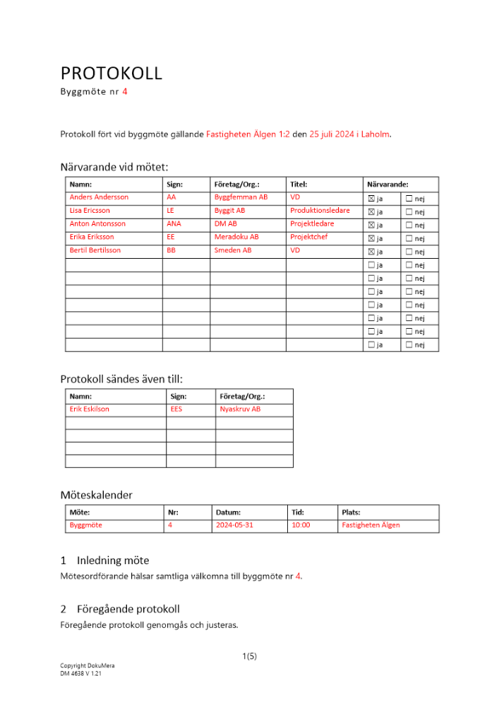 Produkter taggade med 'byggmöte protokoll byggprotokoll byggmötesprotokoll entreprenad'
