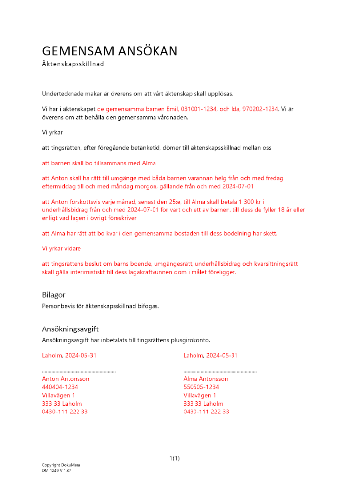 Produkter taggade med 'skilsmässa bröllop Gemensam ansökan äktenskapsskillnad nr 2 vårdnad makar barn umgängesrätt underhållsbidrag'