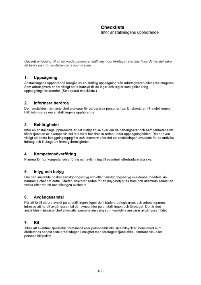 Produkter taggade med 'anställning upphör checklista'