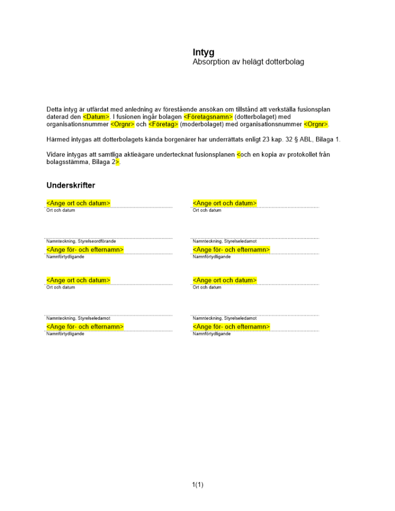 Produkter taggade med 'Intyg borgenärer underrättelse fusionsplan absorption dotterbolag bolagsverket fusion bolagsordning Intyg borgenärer underrättelse fusionsplan absorption dotterbolag bolagsverket fusion bolagsordning'