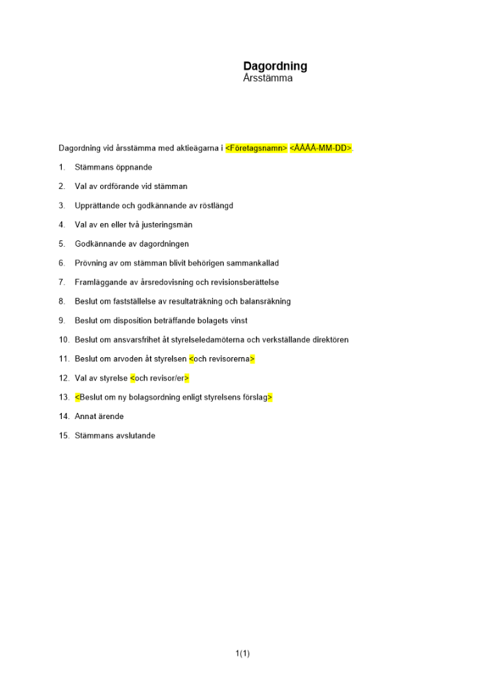 Produkter taggade med 'Dagordning årsstämma disponibla vinstmedel aktiebolag bolagsstämma bolagsordning årsredovisningen'