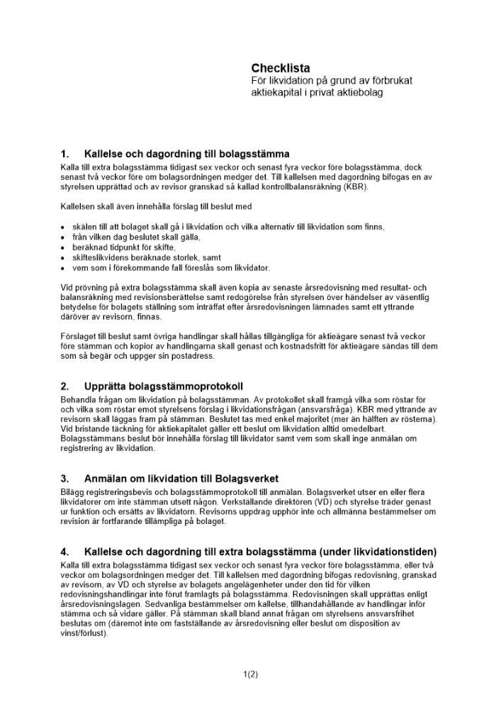Produkter taggade med 'Checklista likvidation förbrukat aktiekapital hälften privat aktiebolag understiger'
