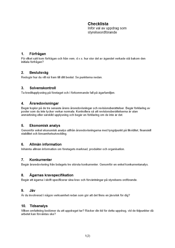 Produkter taggade med 'Checklista val av uppdrag beslut styrelseordförande ordförandeskap styrelse VD styrelsemöten'