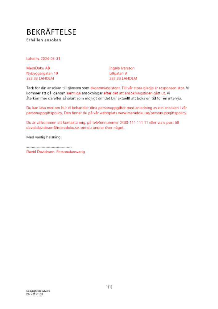 Produkter taggade med 'brevmall rekrytering Rekrytering anställa att anställa rekryteringsprocess bekräftelse ansökan arbetsansökan platsannons platsansökan'