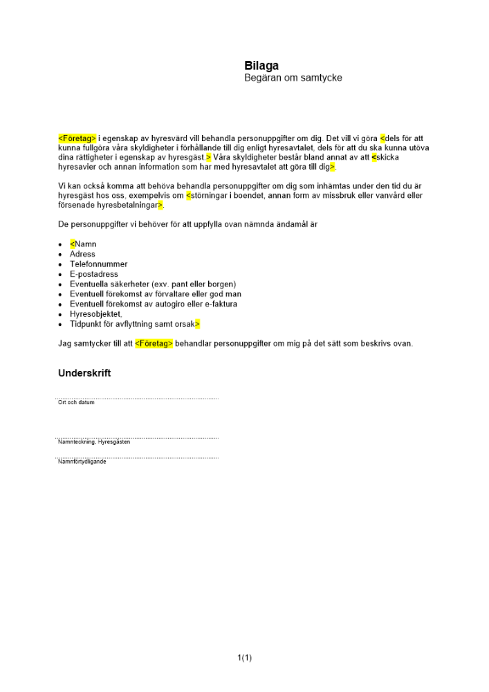 Produkter taggade med 'personuppgifter personuppgiftsbehandling dataskyddsförordningen GDPR bilaga hyresavtal hyresavtal'