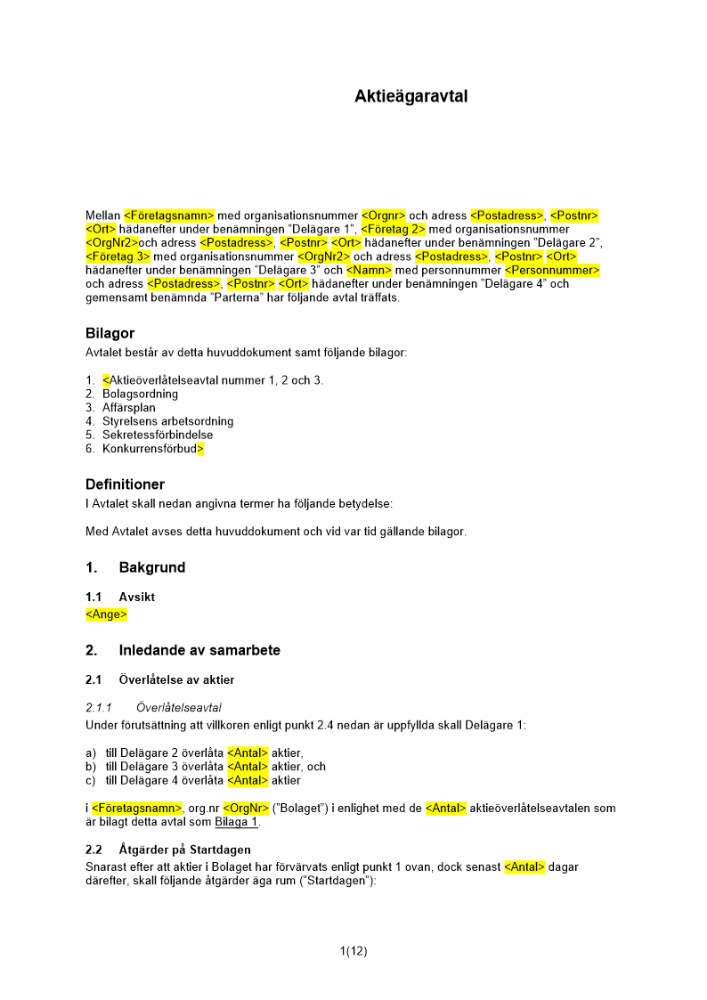 Produkter taggade med 'Aktieägaravtal drag along tag along majoritet minoritet rättigheter aktieägare andelar bolag'