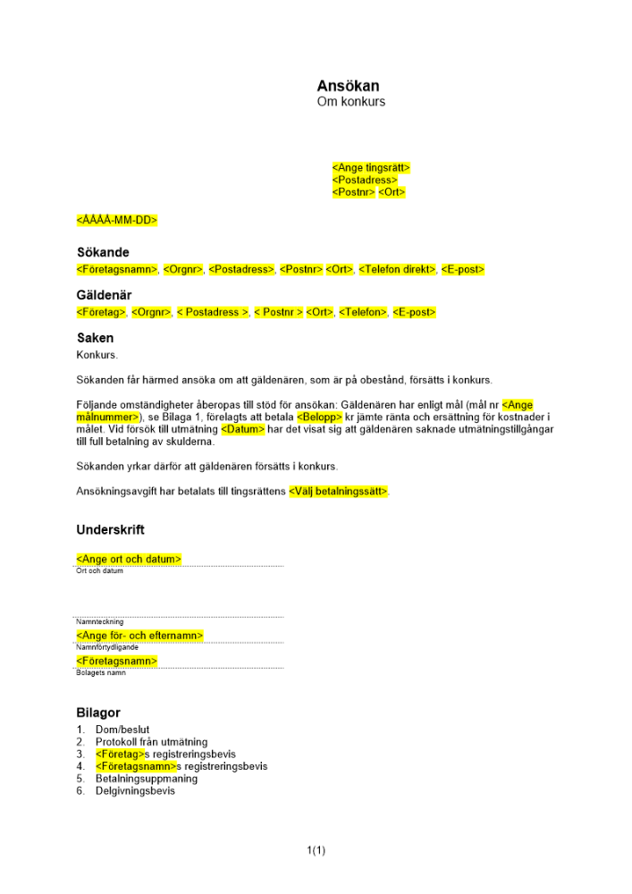 Produkter taggade med 'konkursansökan utmätning konkurs kronofogden gäldenär borgenär'
