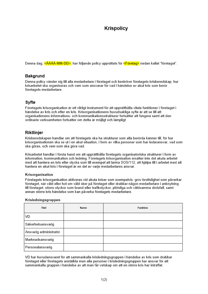 Produkter taggade med 'Krispolicy kris policy krissituation'