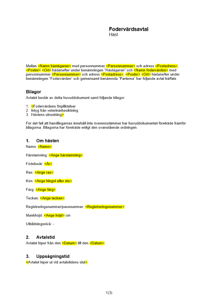 Produkter taggade med 'fodervärd avtal kontrakt fodervärdsavtal fodervärdskontrakt häst hästavtal'