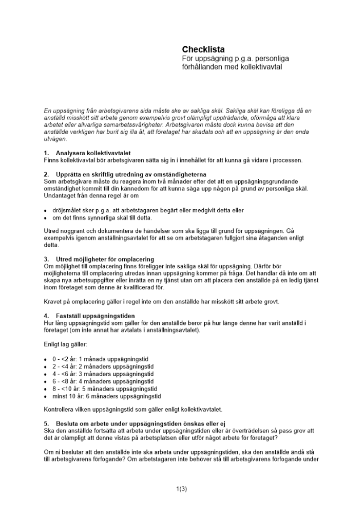 Produkter taggade med 'uppsägningsblankett Checklista uppsägning personliga förhållanden MKA omplacera fackförening kollektivavtalsanslutning'