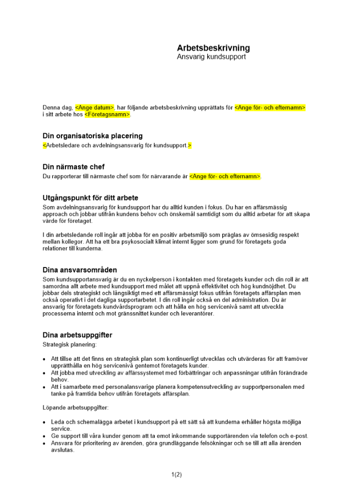Produkter taggade med 'Kundsupport kunder support service arbetsbeskrivning anställningsavtal beskrivning arbetsuppgifter'