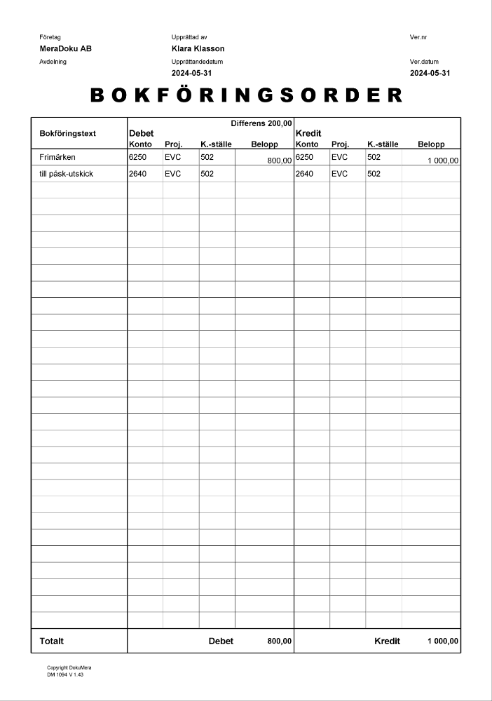 Produkter taggade med 'Bokföringsorder sida dimensioner kostnadsställe projekt konto differensberäkning verifikation omföri'