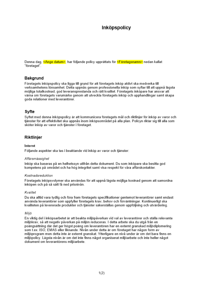Produkter taggade med 'inköpspolicy inköp policy inköpare inköpsansvarig inköpsavdelning'
