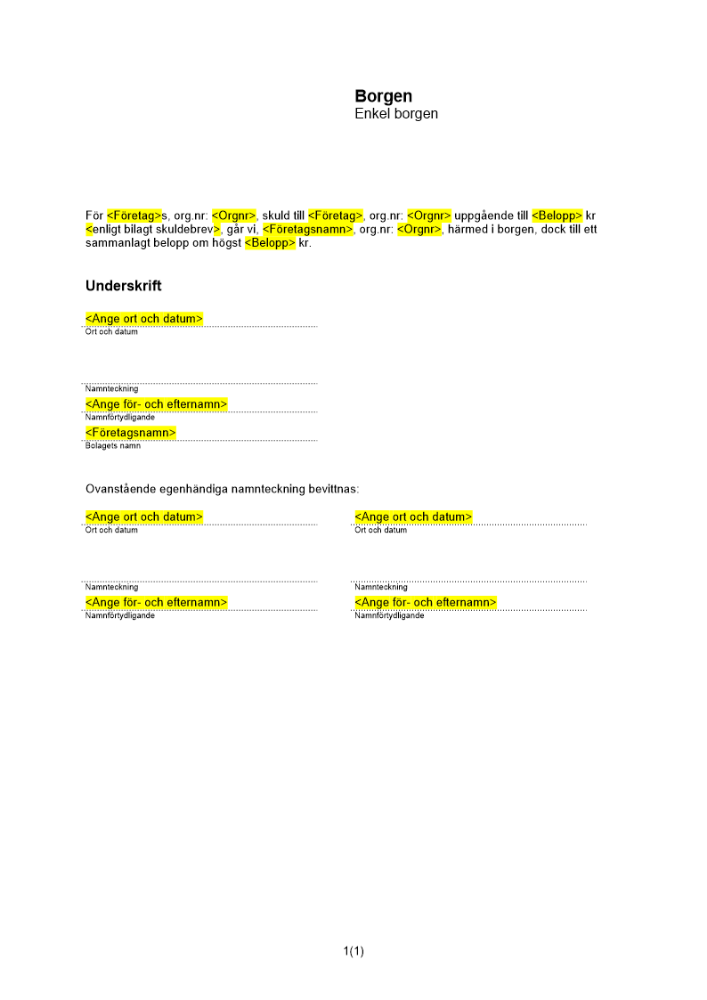 Produkter taggade med 'Borgen enkel borgen begränsad belopp gäldenär borgensman lån skuld'