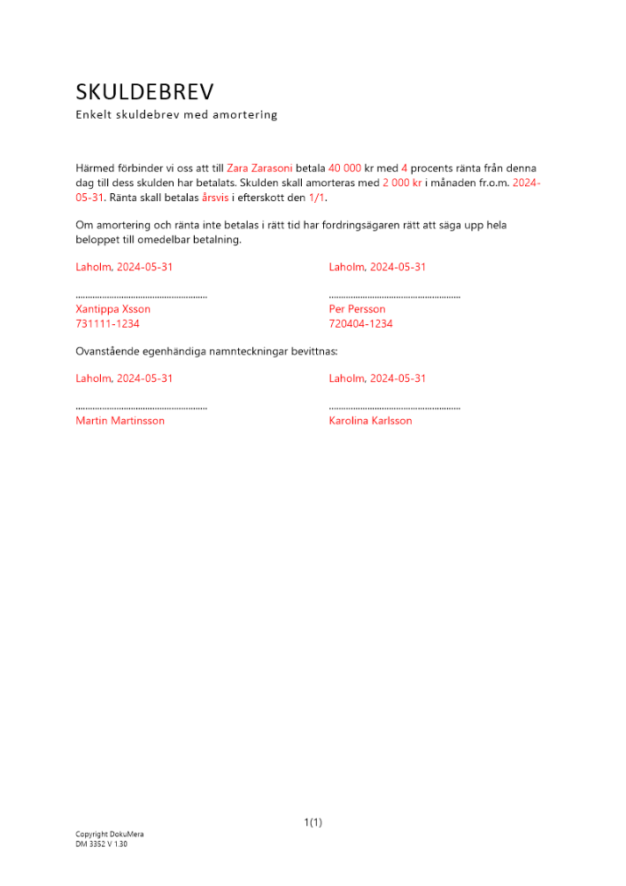 Produkter taggade med 'skuldeförbindelse skuldförbindelse avbetalningsplan Enkelt skuldebrev skuldebrev privatperson amortering betalningsansvar solidariskt gäldenär amorterin'