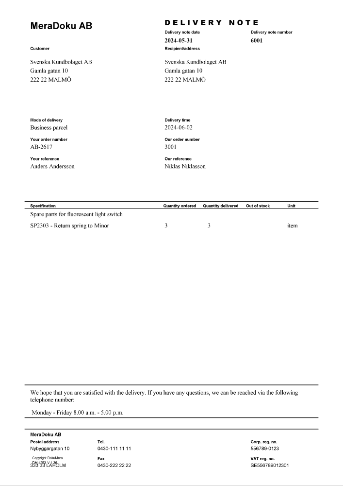 Produkter taggade med 'Eng engelska följesedel varuslag kvantitet varuleverans faktura order varor tjänster Eng engelska Följesedel varuslag varuleverans faktura order varor tjänster delivery note'