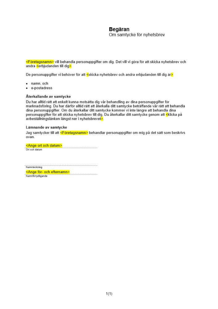 Produkter taggade med 'samtycke nyhetsbrev skriftligt samtycke uttryckligt frivilligt begäran om samtycke'