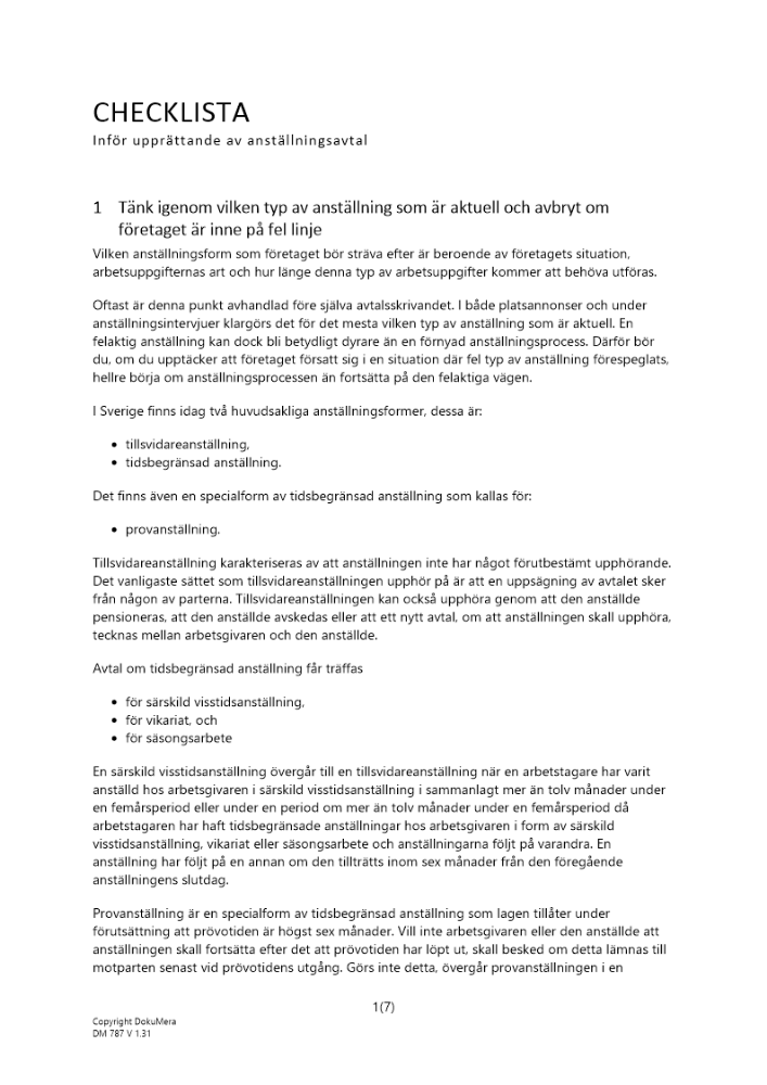 Produkter taggade med 'nyanställning avtal för anställning anställningskontrakt rekrytering anställa att anställa rekryteringsprocess Checklista anställningsavtal sekretessbilaga arbetsbeskrivning checklistan arbetsmoment chef'