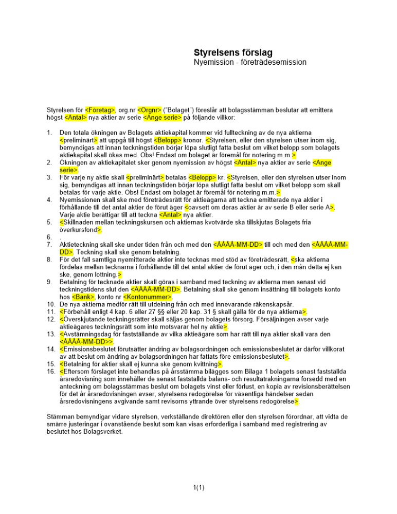 Produkter taggade med 'Nyemission styrelsen förslag stämman publikt avstämningsbolag företrädesemission företräde emission'